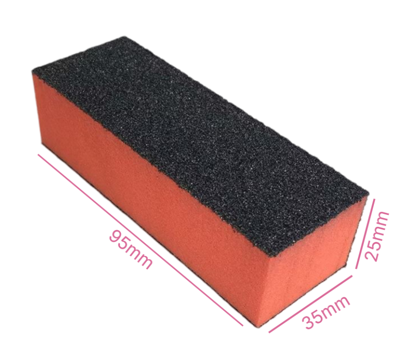 Effektivt polerblock i svart och orange skum med tre slipytor. Blocket är utformat för att jämna ut och forma nagelytan utan att vara för grovt, vilket gör det lämpligt för både naturliga naglar och förberedelser vid gelmanikyr. Den svarta ytan har grit 80/80/100 och ger en kontrollerad slipning med jämnt resultat. Skummaterialet är lätt, hållbart och bekvämt att arbeta med.