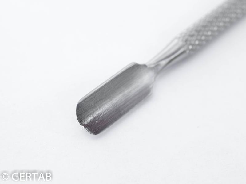 Dubbeländad nagelbandspetare i rostfritt stål för att trycka tillbaka nagelband och avlägsna överflödig hud.