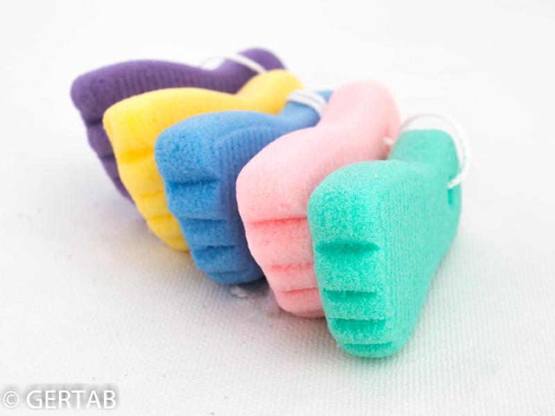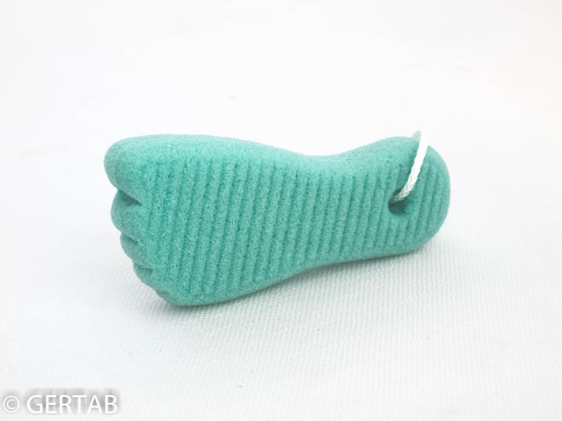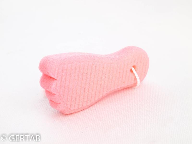 Pimpsten i konstmaterial för att slipa bort förhårdnader på fötterna. Den fotformade designen och de mjuka pastellfärgerna gör den särskilt lämplig som försäljnings- eller presentartikel. Levereras med upphängningssnöre och finns i flera färger.