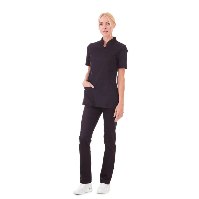 Tunika Suzanne – snedknäppt figursydd tunika i stretchtyg med YKK-dragkedja och ståkrage.