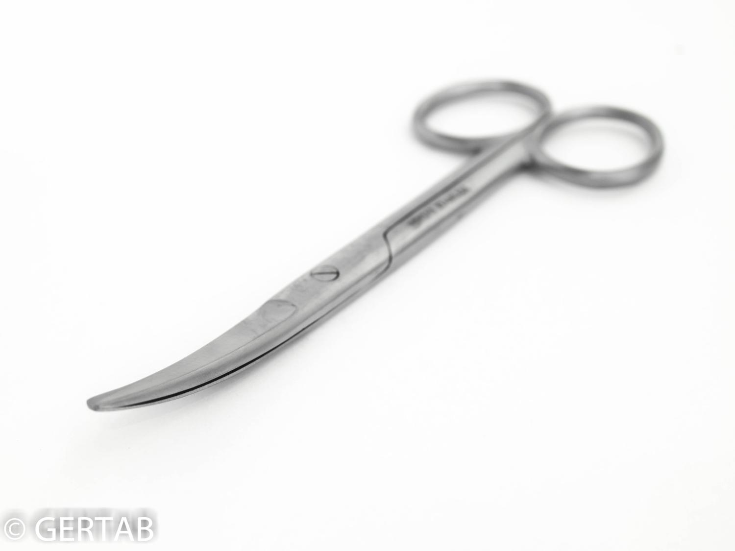 Böjd Coopersax i rostfritt stål, 150 mm. Trubbiga spetsar gör saxen särskilt lämpad för säker klippning nära hud eller känsliga områden.