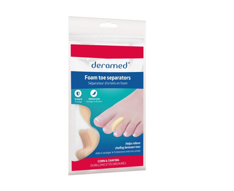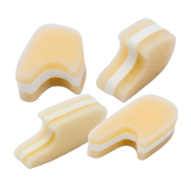 Placeras mellan tårna för att skapa utrymme och minska tryck. Kan användas i skor eller vid vila. Produkten är avsedd för flergångsbruk men bör bytas ut vid slitage.