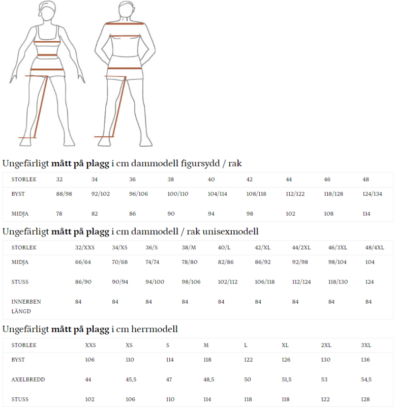 - Storlekar: Anpassad passform för olika kroppstyper.