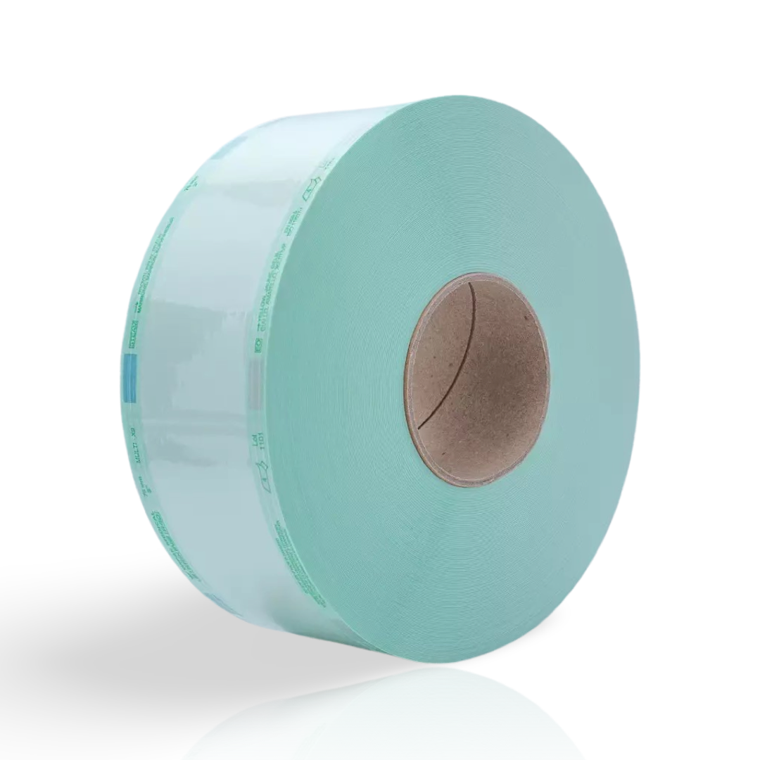 Sterilpåse på rulle avsedd för sterilisering i autoklav eller med ånga. Påsen har indikatorer för steriliseringsprocesserna och kan klippas i önskad längd, vilket gör den flexibel för olika typer av instrument och medicinska produkter.